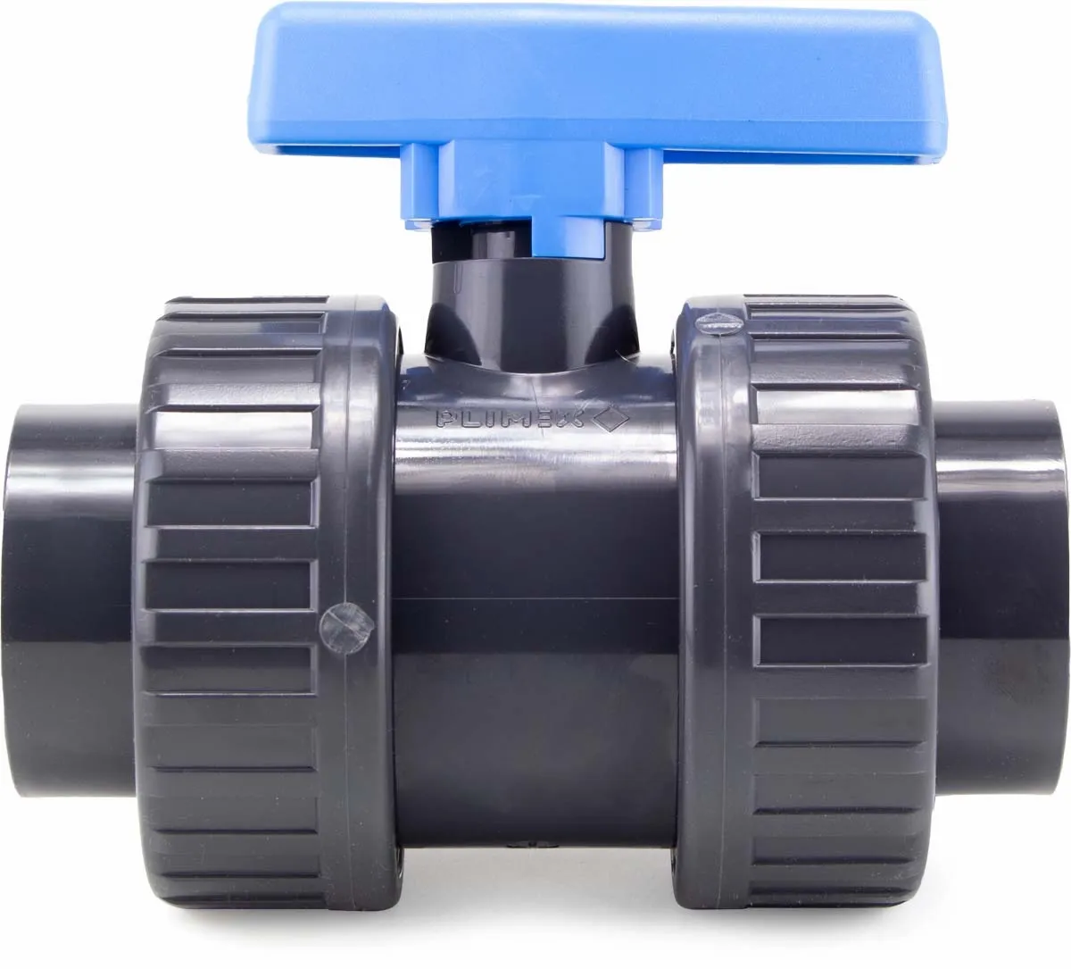 De PVC-U Kogelkraan met dubbele wartel, type Safe 600 heeft een lijmmof verbinding en een maximale werkdruk van 16 bar. Kogelkranen uit de Safe-serie zijn uitgerust met een geborgde kogel. Afdichtingsmateriaal Hytrel / EPDM. De afsluiters zijn verkrijgbaar in diverse maten. Alle lijmverbindingen zijn volgens EN-ISO 1452-3.