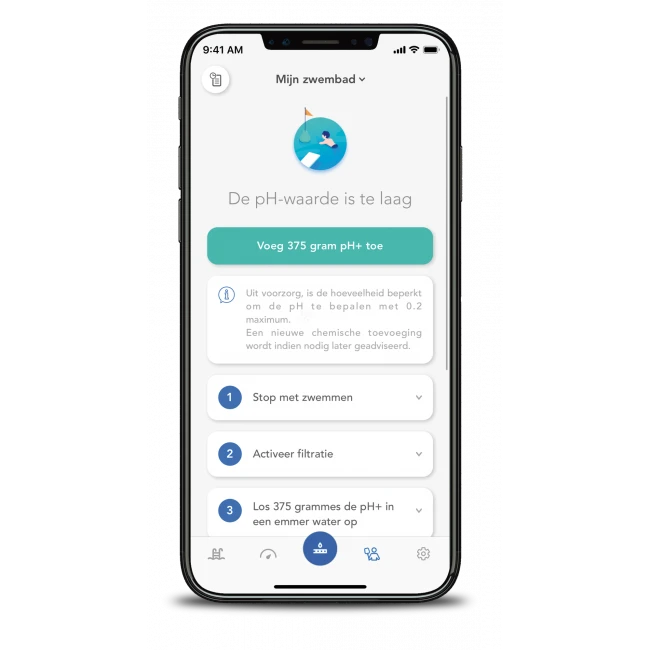 Deze gratis app is op iOS en Android apparaten te downloaden. Via deze app leest u de belangrijkste parameters van de waterkwaliteit van uw zwembad af, zoals de temperatuur, het zoutgehalte en de pH- en ORP/REDOX waarde. De ORP/Redox waarde geeft u inzicht op het ontsmettingsvermogen van het water. Vervolgens geeft de app in stappen aan wat u moet doen om de waarden goed te krijgen en te behouden. Met de Blue Connect PLUS zout watertester krijgt u een Blue Expert Modus abonnement, zodat u nog meer gegevens af kunt lezen. Zo krijgt u via het abonnement ook weersinformatie. Daarnaast heeft u de mogelijkheid om terug te kijken naar eerdere metingen.