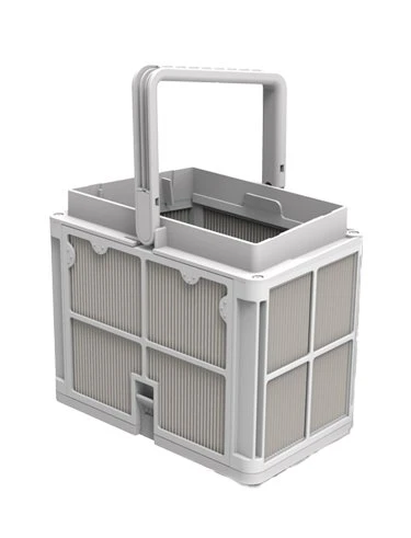 1 knop om he toestel aan te schakelen blijft voor iedereen het meest eenvoudige. De transformator moet in het stopcontact geplaatst worden en zo wordt er met 24 Volt gewerkt in het zwembad. Dit gebeurt op een zeer veilige manier. De mand waarin het vuil ligt, is eenvoudig te verwijderen via het handvat dat bovenaan ligt. De cartouches kunnen afzonderlijk verwijderd worden, zodat ze met een tuinslang schoon gespoeld kunnen worden.