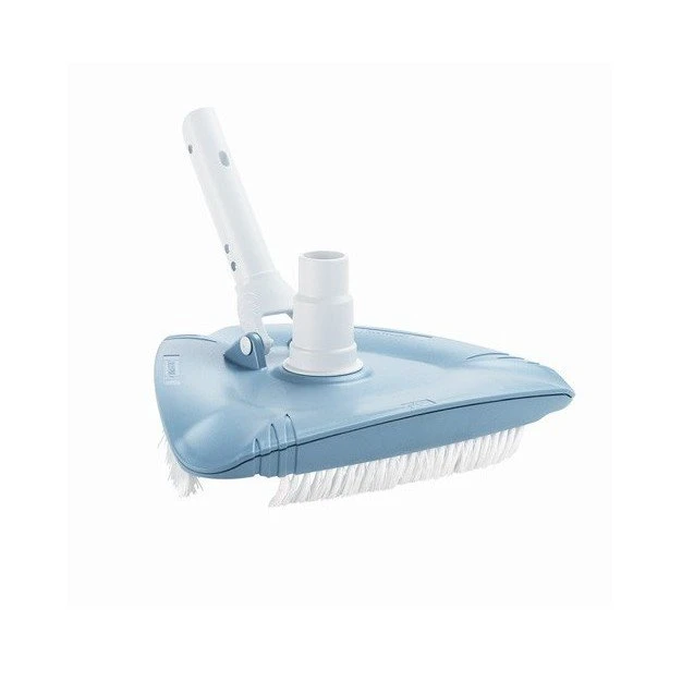 Voor het handig reinigen van kleine en middelgrote baden. Driehoekige vorm, waarmee deze zwembad bodemzuiger handig in de hoeken van het zwembad kan schoonmaken. Deze zwembad bodemzuiger is voorzien van stevige nylon borstels.
