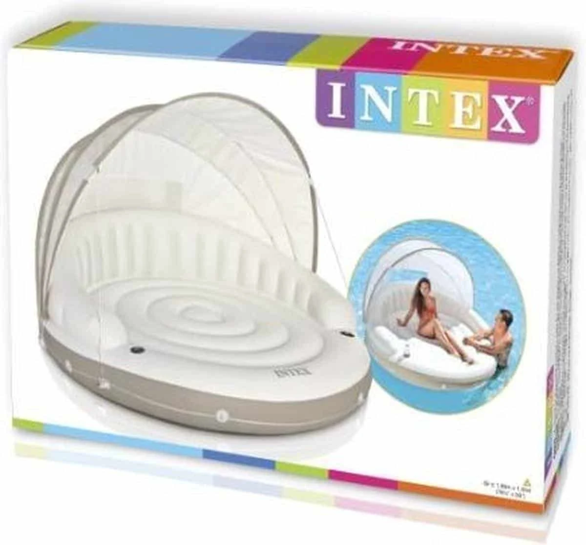 Geniet op het water met deze heerlijke opblaasbare lounge met zonnedak. Heerlijk zitvlak en beschermkap tegen de zon. Dit drijvende eilandje wordt geleverd met 2 bekerhouders.