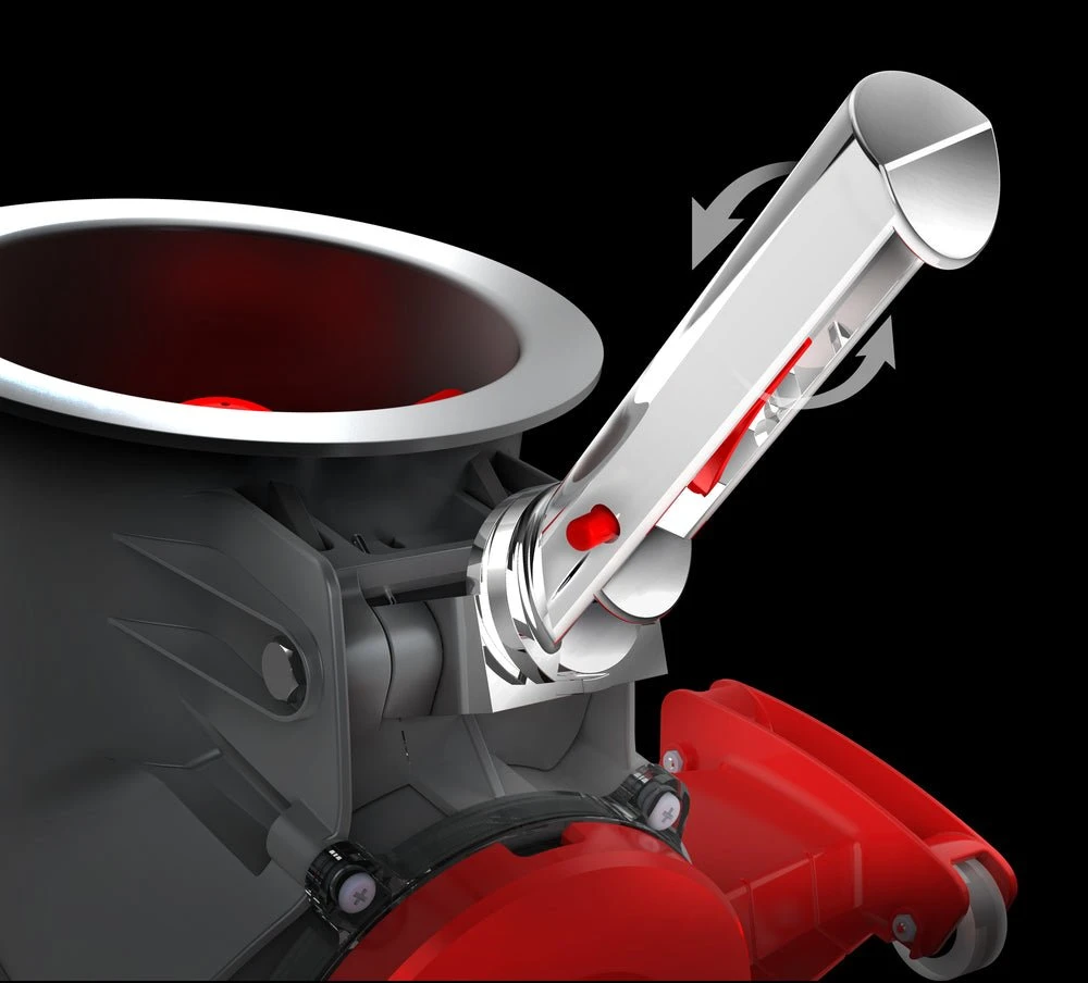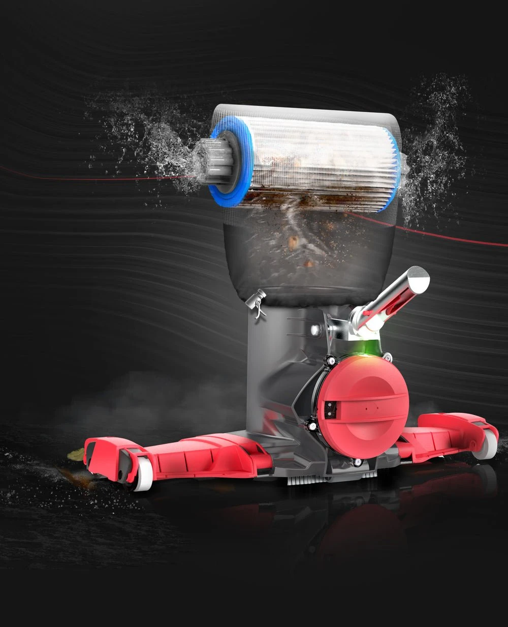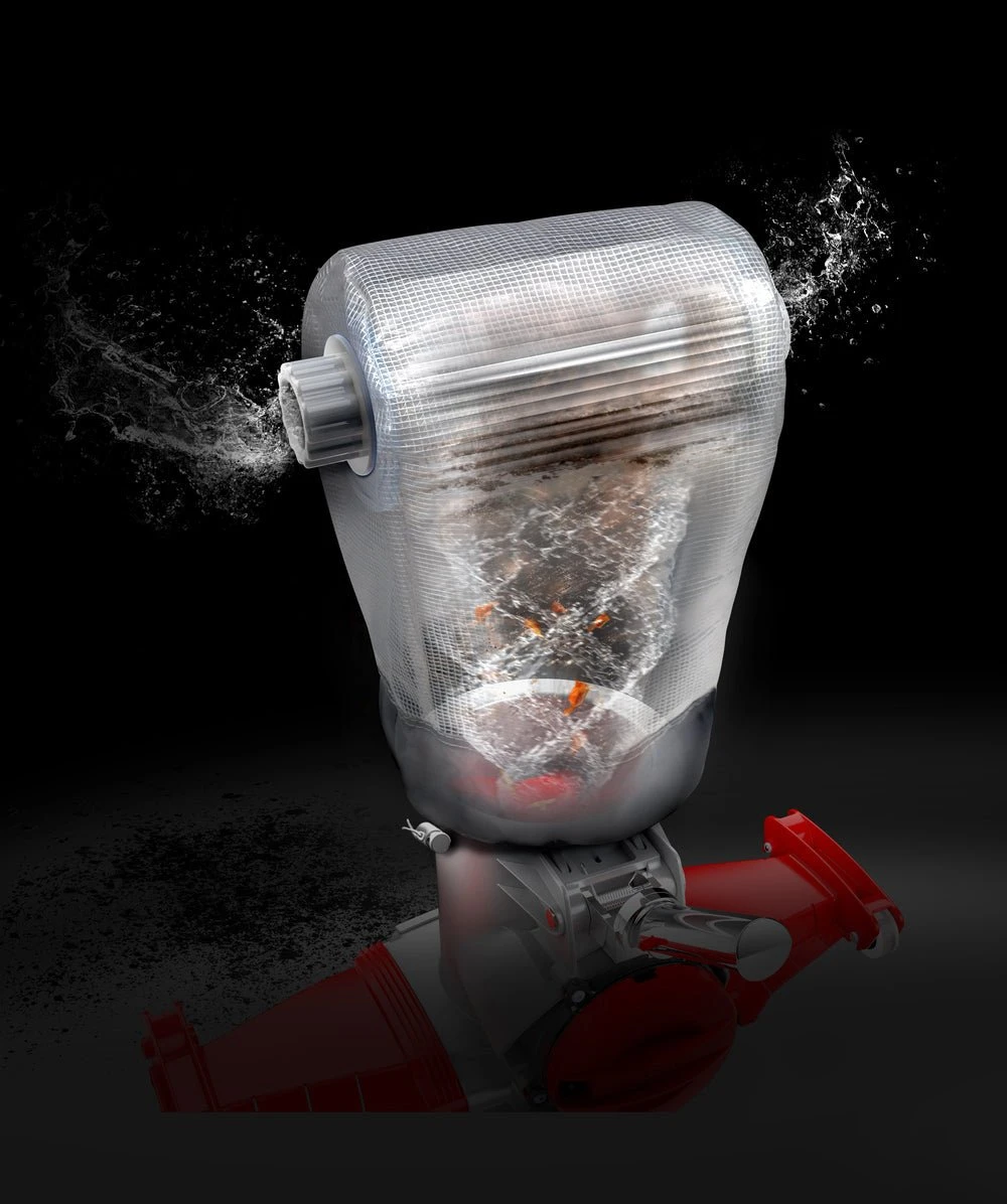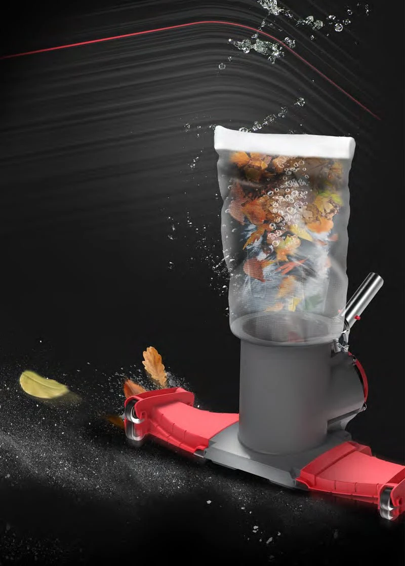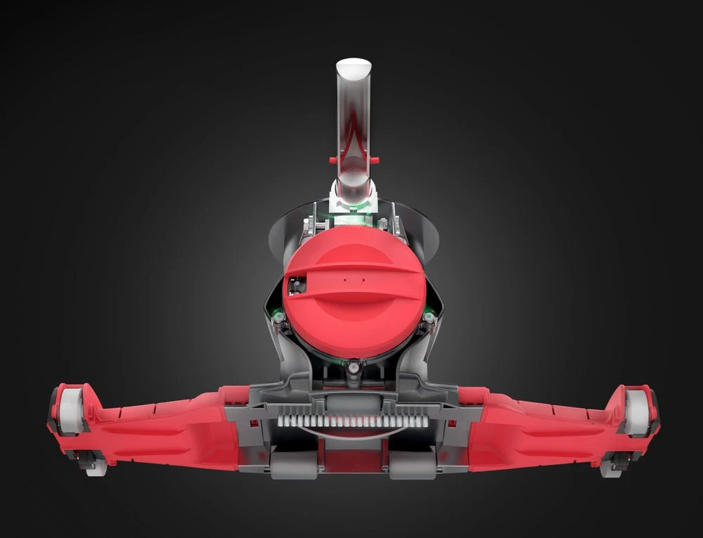 Het vuil wordt opgezogen via de zijkanalen waar de zuigkracht geconcentreerd is om een maximale efficiëntie te garanderen. De transparantie zorgt voor zichtbaarheid om de vuilophoping tijdens het reinigingsproces te controleren.