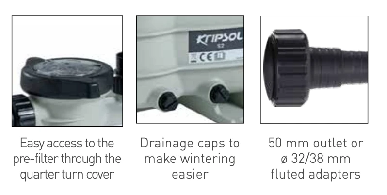 De S2-150M-pomp wordt voornamelijk gebruikt in het circuit van het zwembadwaterfiltratiesysteem. Door zijn betrouwbaarheid en gebruiksgemak heeft de S2-150M pomp zich bewezen voor zwembaden tot 68 kubieke meter. Het pomplichaam is gemaakt van hoogwaardig kunststof, bestand tegen chemicaliën die worden gebruikt om zwembadwater te desinfecteren. De S2-150M pomp werkt op 220V AC. De S2-150M-pomp is ook uitgerust met een grof filter, waardoor de mogelijkheid van schade door mechanisch vuil dat de pomp binnendringt, wordt uitgesloten.