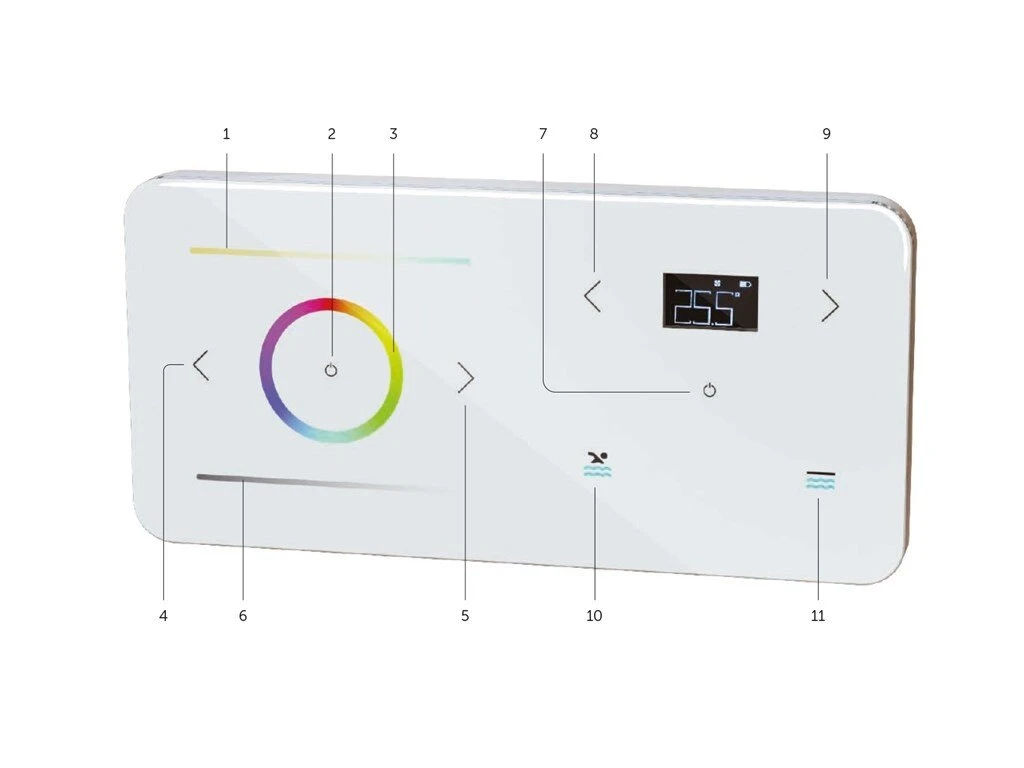 LINK Touch bedient alle kleurenprogramma’s en de lichtsterkte van uw led-zwembadverlichting. U kunt eenvoudig bladeren in de verschillende kleurenprogramma’s of gewoon door met uw vinger over het scherm te vegen. Ook handig te gebruiken in het donker, want het scherm is voorzien van kleine ledlampjes die oplichten en duidelijk de gekozen instellingen weergeven. Oplaadbaar via de meegeleverde adapter met USB-aansluiting.