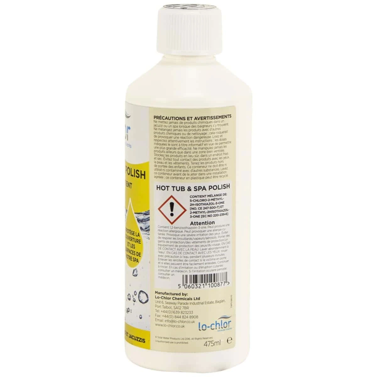Hot Tub & Spa Polish is een uniek product die je spa polijst en alle acryl, vinyl en rubber oppervlakken laat glanzen. Lo-Chlor Hot Tub & Spa Polish beschermt tevens alle oppervlakken tegen vocht, agressieve chemicaliën en UV-stralen zonder dat de kleur van het oppervlak veranderd. Laat je spa shinen als nooit tevoren met deze professionele polish.