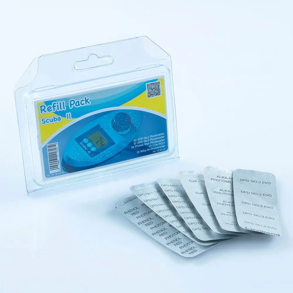 Dit pakket is een uitbreidingspakket voor de Lovibond Scuba 2. De normale Lovibond tabletten zijn namelijk niet te gebruiken voor de Lovibond fotometers. Andersom zijn deze tabletten niet geschikt voor een handmatige tester. Het pakket bestaat uit: