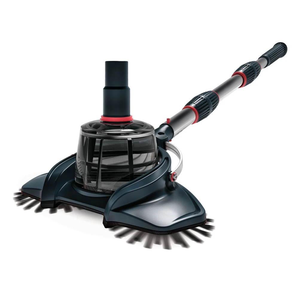 Roterende onderste borstels zuigen actief nabijgelegen vuil aan in de zuigkop voor een efficiënte reiniging. Gemakkelijk te draaien en te vergrendelen deksel. Het afvalcompartiment is gemaakt van duurzaam polycarbonaat. Stevige aluminium handgreep. Zware behuizing houdt constant contact met het oppervlak. Draaibare slangtule voorkomt dat de slang verstrikt raakt. Geschikt voor 32/38 mm zuigslangen.